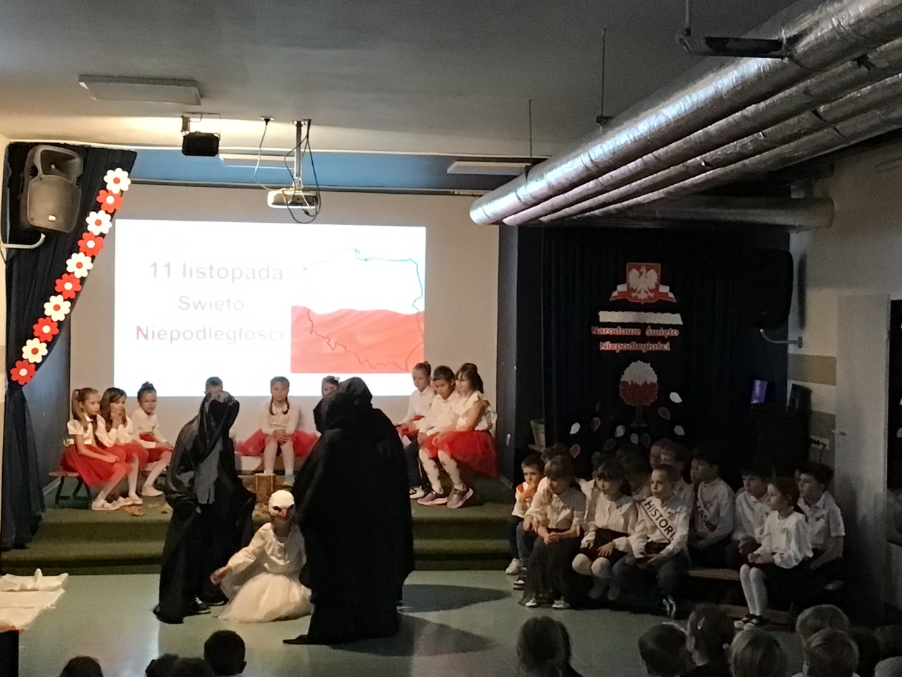 W piątek, 8 listopada, uczniowie klas 1–3 naszej szkoły zaprezentowali wyjątkowe przedstawienie z okazji Święta Odzyskania Niepodległości przez Polskę. Była to uroczystość pełna wzruszeń, emocji i prawdziwej dumy z naszej Ojczyzny. Podczas występu najmłodsi uczniowie z wielkim zaangażowaniem przybliżyli losy Polski, opowiadając o trudnych chwilach niewoli i radości z odzyskanej wolności. Nie zabrakło także pięknych tańców z biało-czerwonymi szarfami oraz pieśni patriotycznych, które wprowadziły wszystkich w niezwykły nastrój. Publiczność nagrodziła młodych artystów gromkimi brawami, a wielu z nas nie kryło wzruszenia. Takie chwile przypominają, jak ważne są pamięć, wolność i miłość do Ojczyzny.